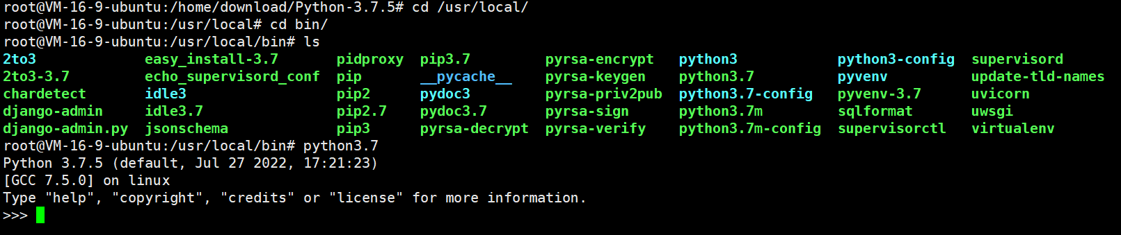 wget https://mirrors.huaweicloud.com/python/3.7.5/Python-3.7.5.tgz or wget https://www.python.org/ftp/3.7.0/Python-3.7.0.tgz # 解压 tar -zxvf Python-3.7.5.tgz